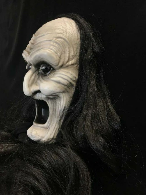 High quality handmade vacuform mask with attached cowl and hair.