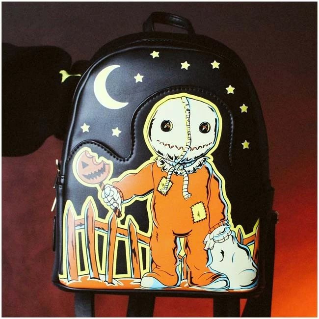 Collect all of your spooky treats in this adorable Trick ‘r Treat Retro Backpack. Featuring everyone’s favorite trick or treater, Sam, out for a night of, well.. you know.. with an interior print of Sam’s signature lollipop, and a little reminder on the back to always check your candy 😉