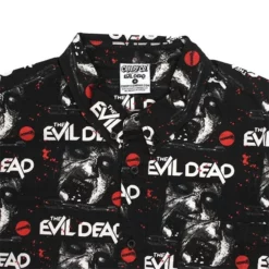 This Evil Dead Button-Up Shirt features Cheryl the Deadite beckoning to be released from the fruit cellar but don’t fall for her tricks! Topping off the image with a red VHS-inspired Horror label.