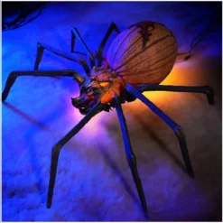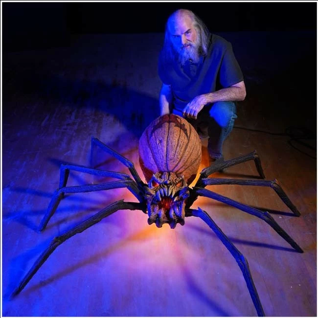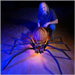 Jack Widow has striking detail, long bendable legs for posing and two LED lights that create an eerie glow for your pumpkin spider. The evil looking hour glass on the spiders abdomen signals BEWARE. Our giant spider Halloween pumpkin prop is hand crafted and painted at Distortions Unlimited and made to last. It is made of latex and foam filled with metal armature.
