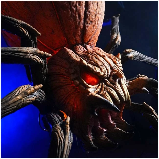 Jack Widows stands on the floor or a platform and its legs can be posed and positioned to create various looks. It can also be hung or mounted using the included chain in the abdomen. Imagine positioning him in a scene of pumpkins or with Halloween spider webs around it!