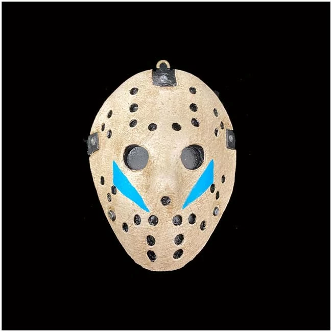 High quality hand sculpted hockey mask tree decoration cast in resin and painted by hand.