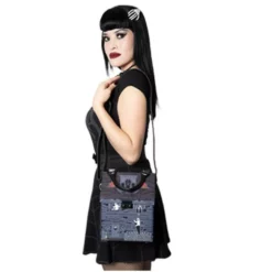 Now you can own your own haunted house! Our Haunted House Purse comes complete with printed ghosts and skeli girls!