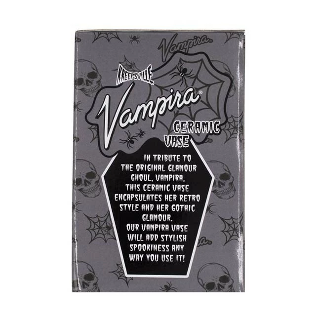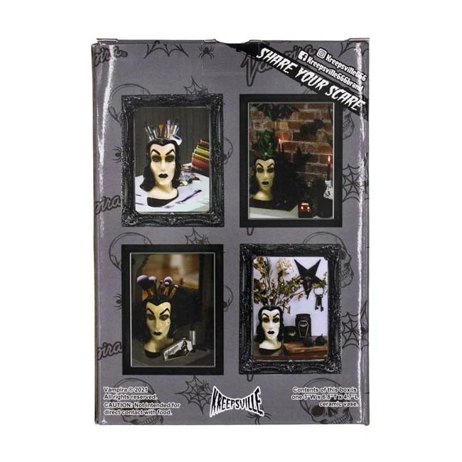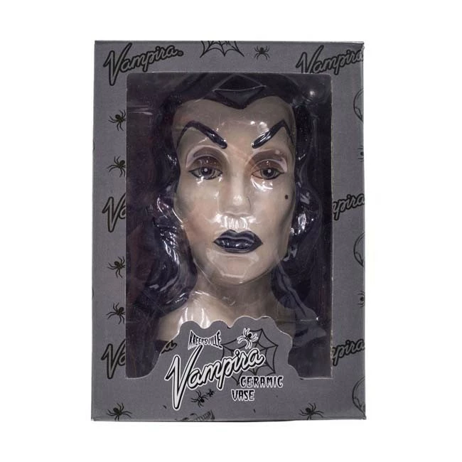 Officially licensed Vampira portrait ceramic vase by Kreepsville, a fine addition for your home or office space to hold your favorite batch of roses or everyday necessities.