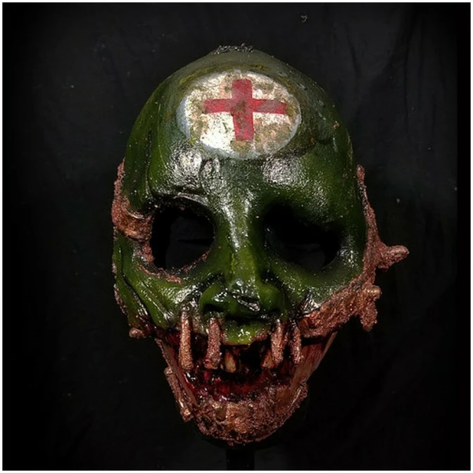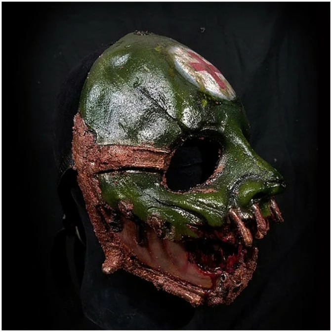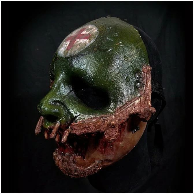 This incredibly creepy mask is high detailed and hand finished. With heavy duty adjustable straps and moveable jaw, it is ideal for scare actors and makes for a great nasty finish to a military themed costume.