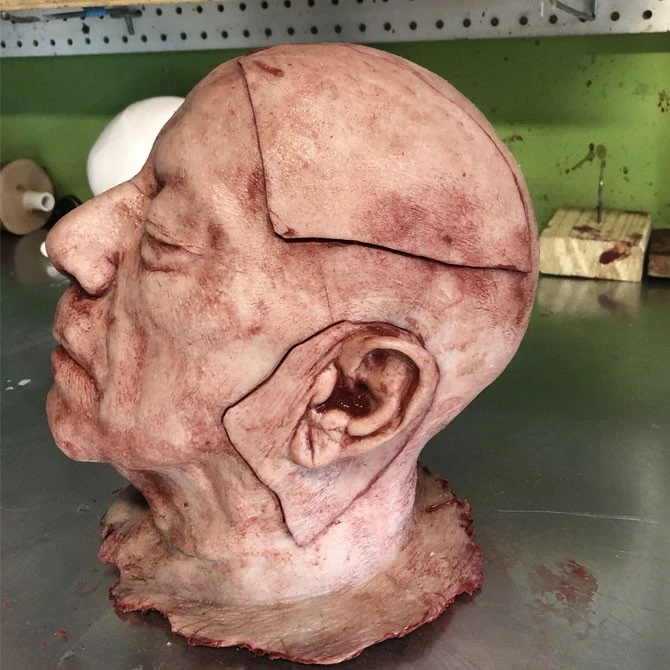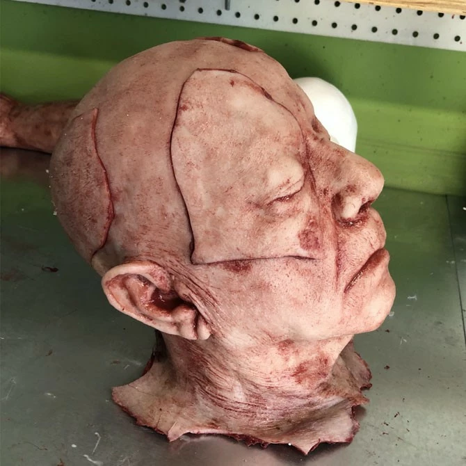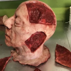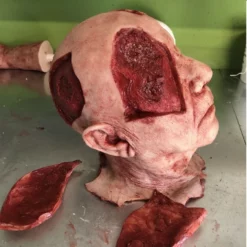 This severed head has four flaps of removable skin that are attached with strong magnets. The perfect addition to your escape room puzzles. Highly detailed and extremely durable this Piece is skinned with silicone and has a foam core. Each piece is individually made so each one is unique.