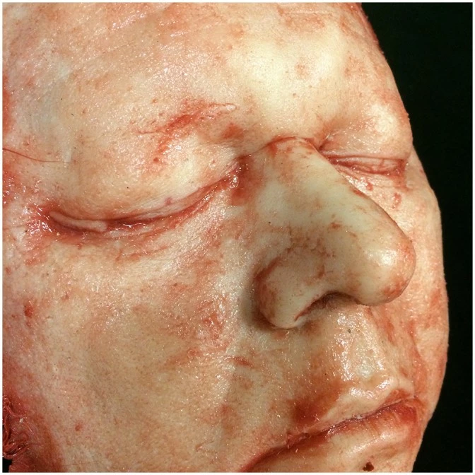 Crafted by a professional US horror artist, this silicone skinned face is a professional quality prop. Looks as if it’s been freshly ripped off the body!