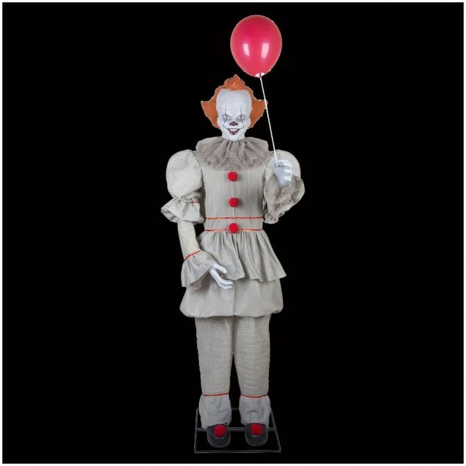 Life size animated Pennywise figure from the 2017 movie. Frighten your guests as this Pennywise the Clown prop comes to life! Life-size prop moves his head and arms and speaks phrases right from the movie! Perfect for parties and haunted houses, ideal for indoor use.