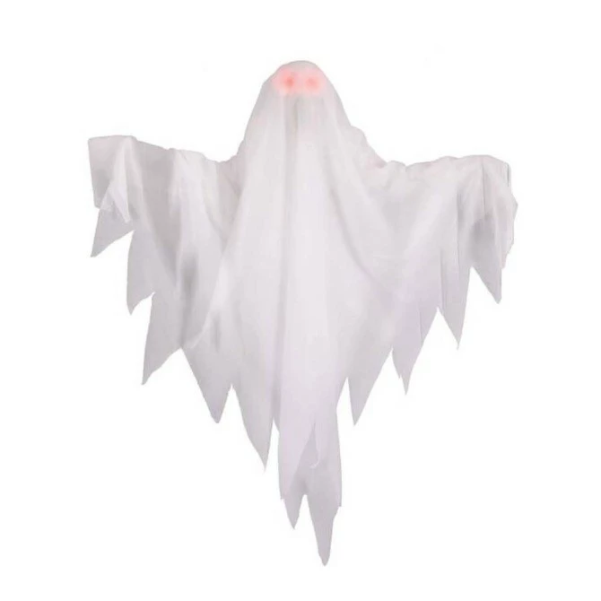 This classic ghost decoration is a haunted house essential. A must-have addition to Halloween décor, this traditional white-sheeted figure comes back to life with moving arms, glowing eyes and the unearthly moaning of a lost soul.