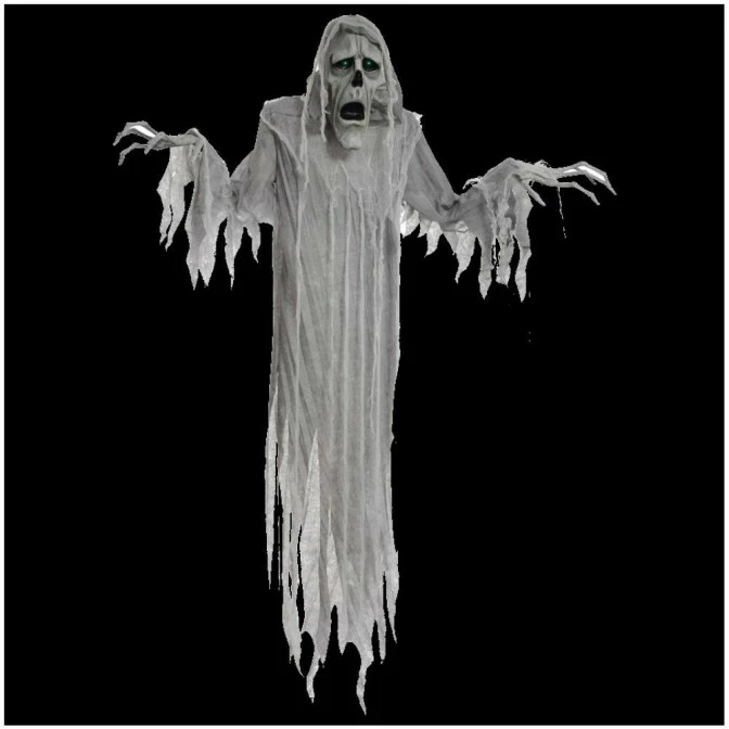 This impressive animated hanging phantom prop is a giant 6ft tall and comes with a cord so you can hang him in your porch or anywhere in you home!