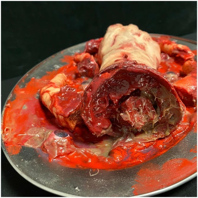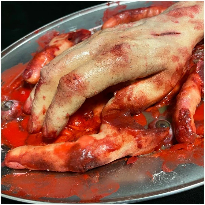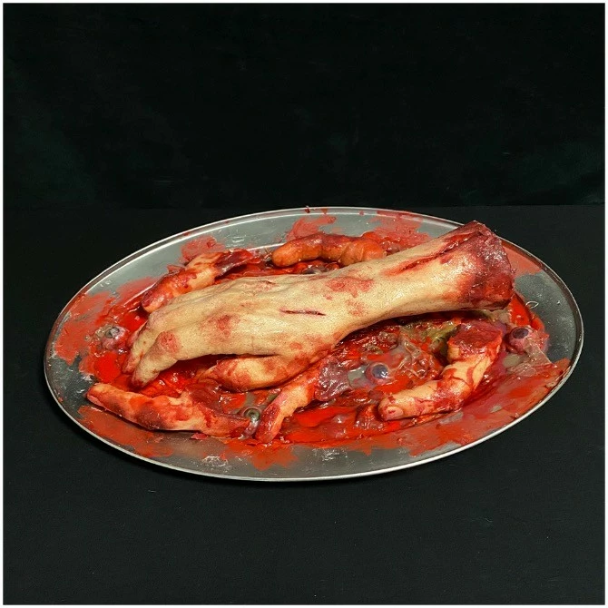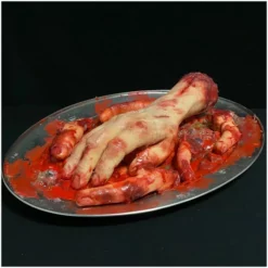 Gory platter ready to serve up to your cannibal or flesh-eating zombie Halloween guests.