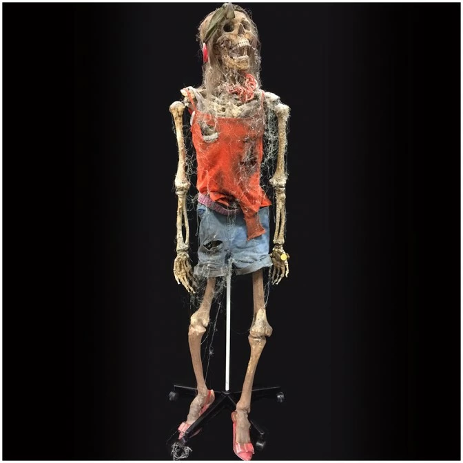 Designed and built in the UK by an awesome team of artists, this incredibly detailed skeleton prop is remnant of a disastrous night out. Barbara never made it home with the rest of her friends, her skeletal form has now been found and will make a terrifying finish to your scare maze or escape room.