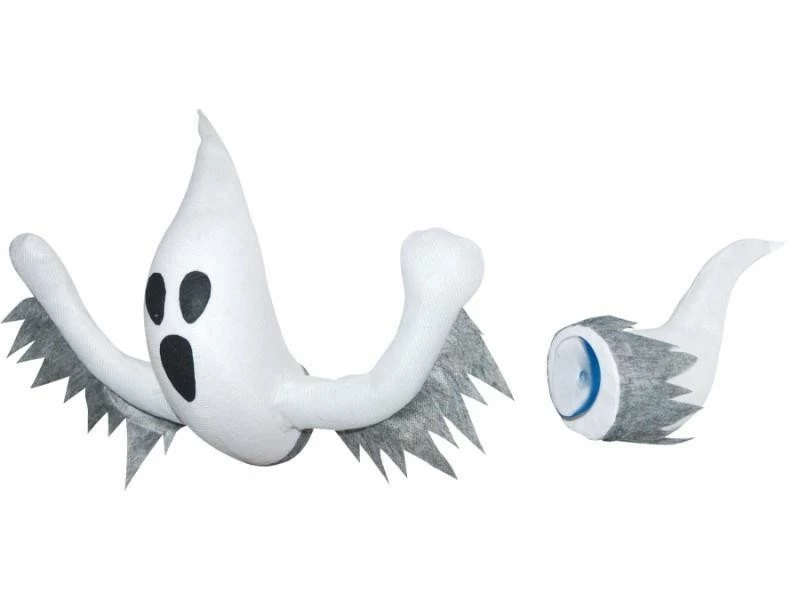 A great Halloween idea that allows a ghost to seem as if it is crashing through your window. The ghost is white with jagged grey accents and has poseable wires in the arms.