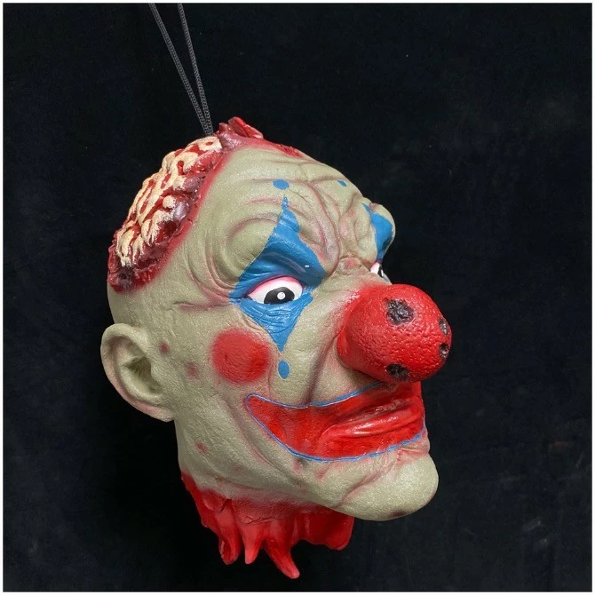 Life size hanging severed clown head perfect for a circus themed Halloween party.