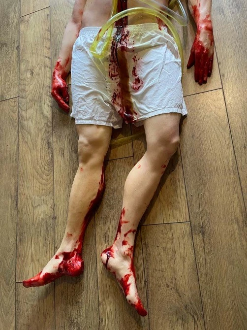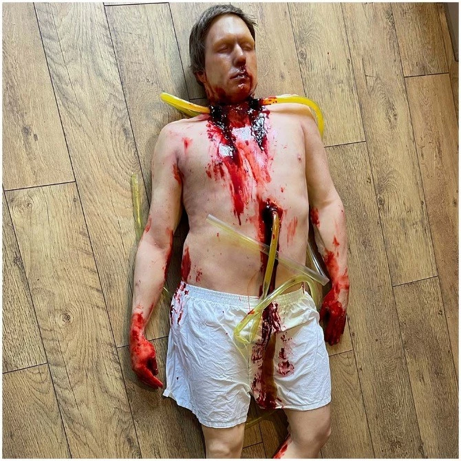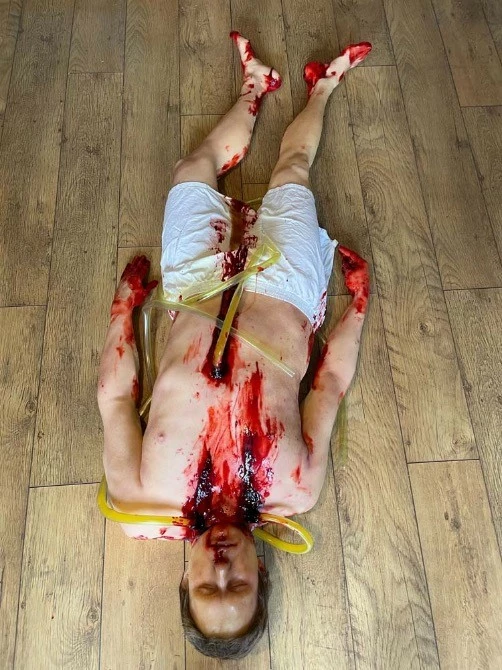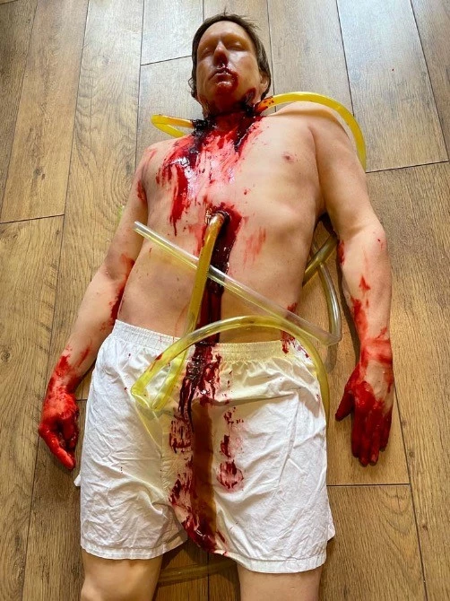 Life cast male body, incredibly realistic with a high level of detail. Perfect for asylum and medical themed scenes.