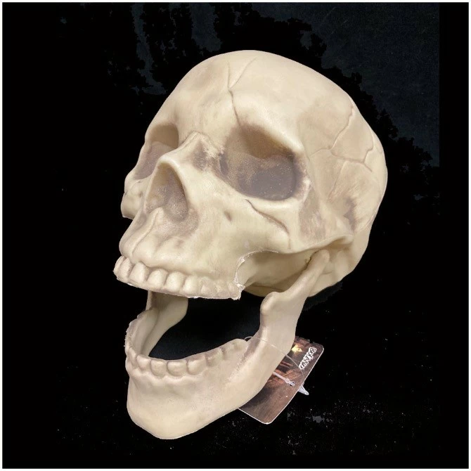 Plastic life size skull, perfect for your Halloween scene. Jaw moves