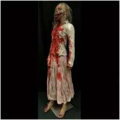 Life size super gory zombie woman. This life size prop has been designed and scuplted by an independent US artist especially for us at Mad About Horror. Sculpted and painted by hand the quality is exceptional.