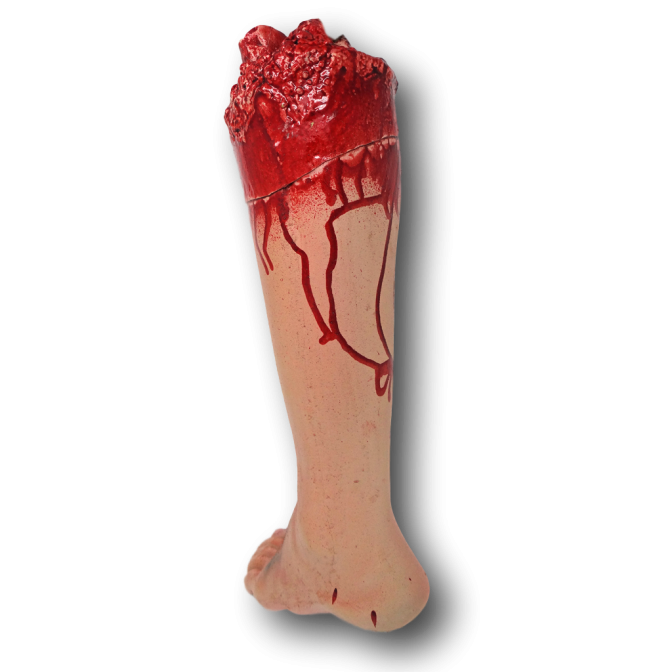 Chopped off severed leg, right or left, if you have a preference please let us know.
