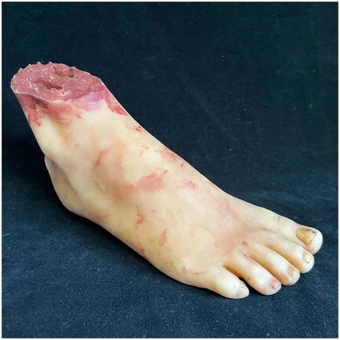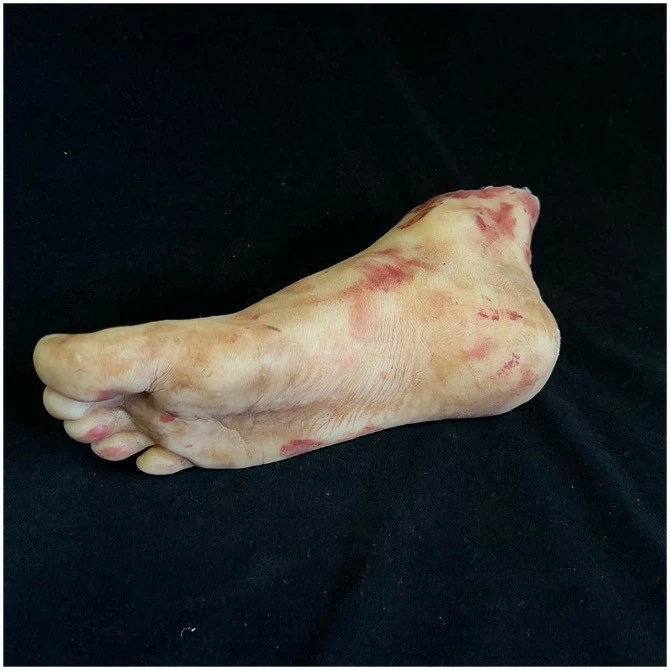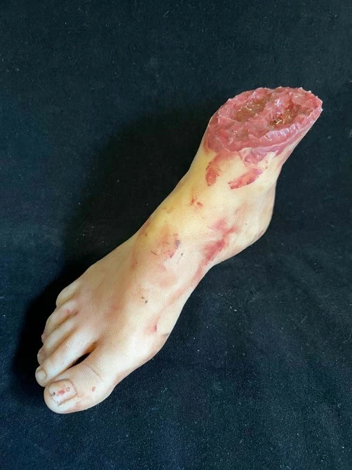 Life cast female foot. Sculpted and hand painted by a US horror artist for the SFX industry.