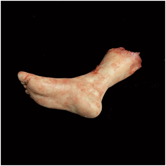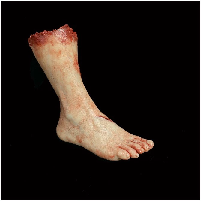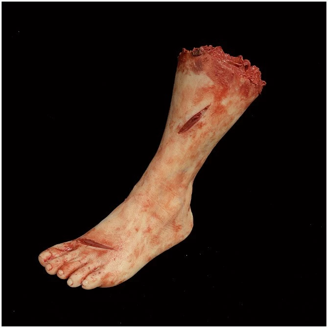 Crafted by a professional US horror artist, this silicone severed leg is a professional quality prop.