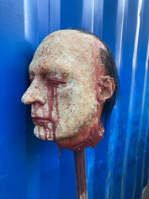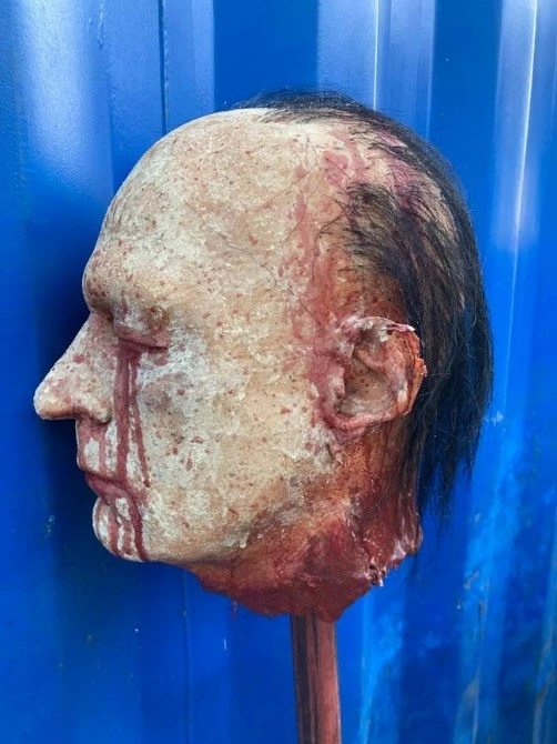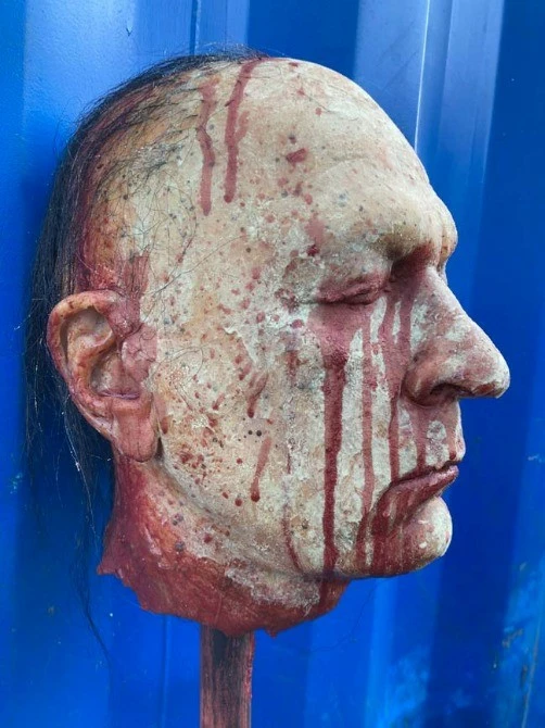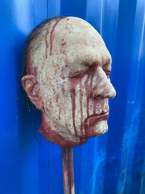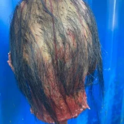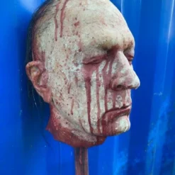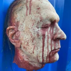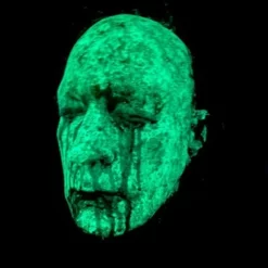 A highly detailed life cast head, hand moulded and painted. With hand punched hair and glow in the dark paint.