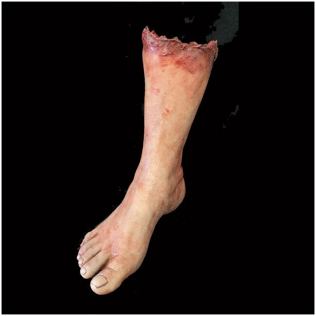 Life cast human severed foot in a ‘dead a while’ finish. Add to your mortuary themed scare maze or graveyard scene.
