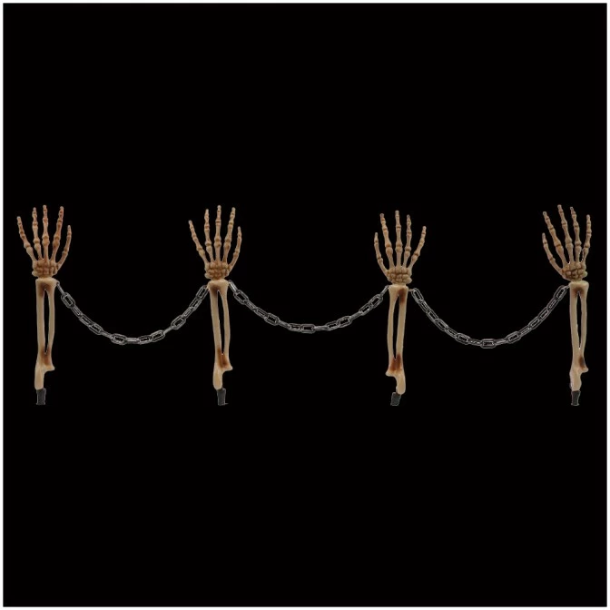 A creepy set of 4 skeleton arms connected by plastic chains. 1.5m long in total. Great for your Halloween graveyard scene.