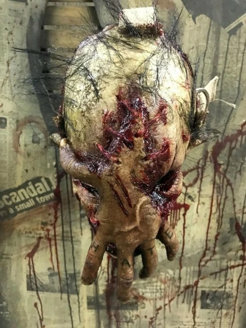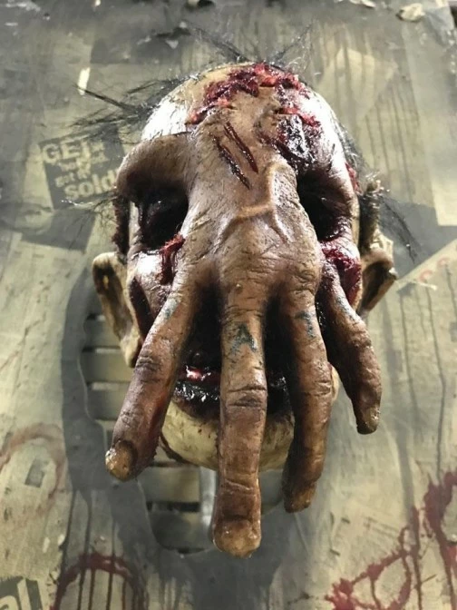 Handsome speaks for himself! Some freak has sewn a skinned hand onto this face…