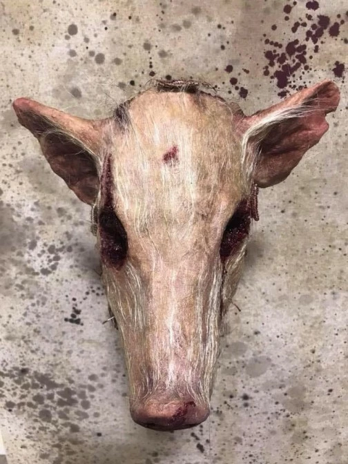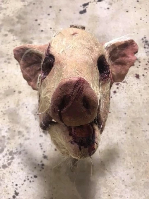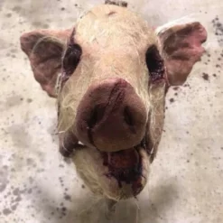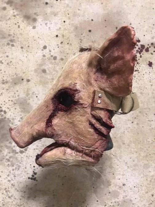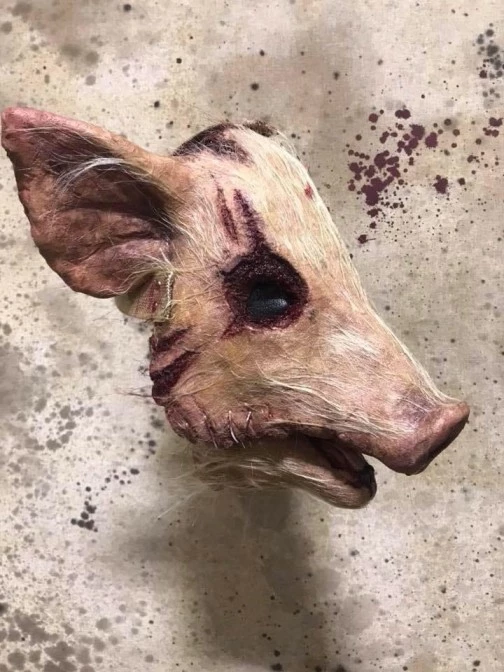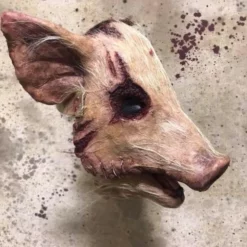 This pig mask is incredible. With coarse hair which has been attached by hand, this looks so realistic. This high quality latex mask has a separate working lower jaw which attaches behind your head with a strap. The face part then fits over the top.
