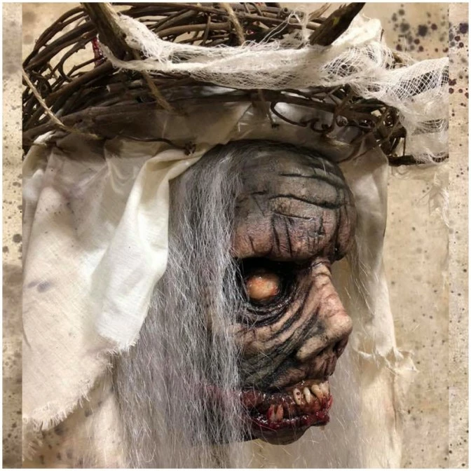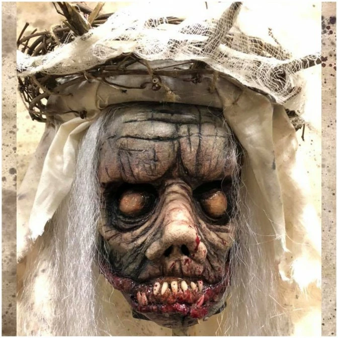 His creations are now purchased by celebrities, collectors, and business owners all over the world. He has also created many different make-up and F/X jobs for film and stage. This grotesquely scary mask is uniquely terrifying.