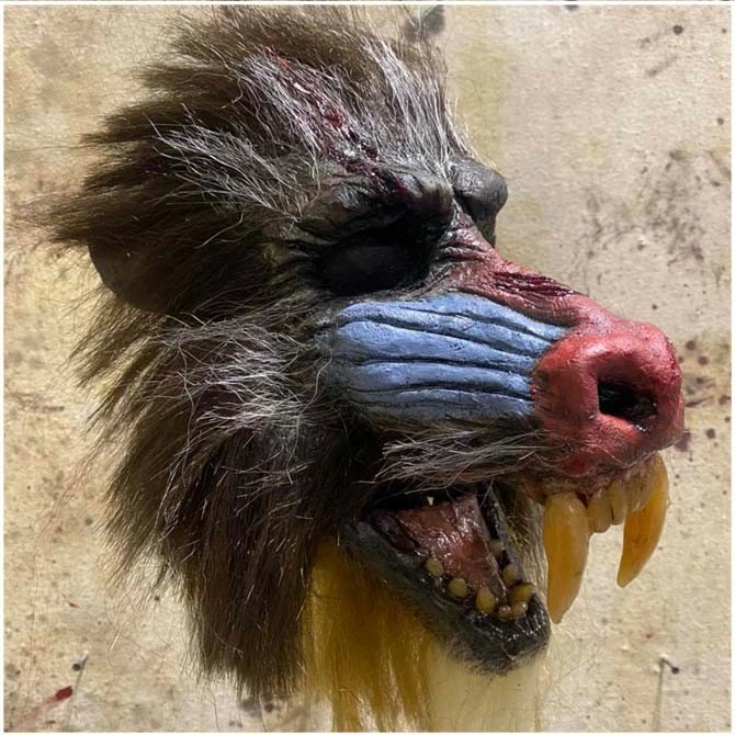 Incredibly detailed hand sculpted and painted baboon mask by Pumpkin Pulp.
