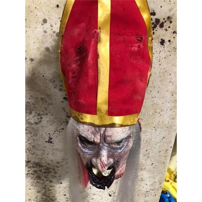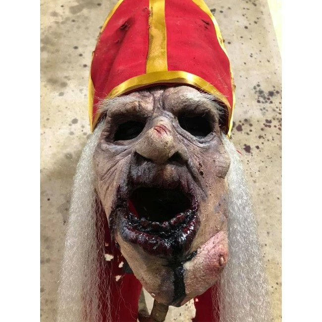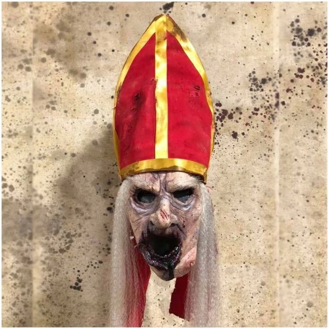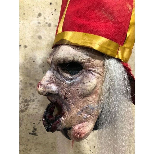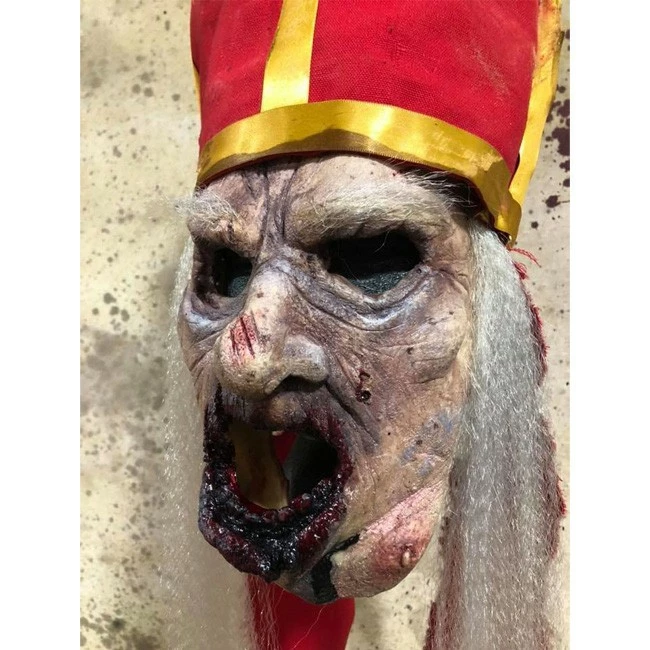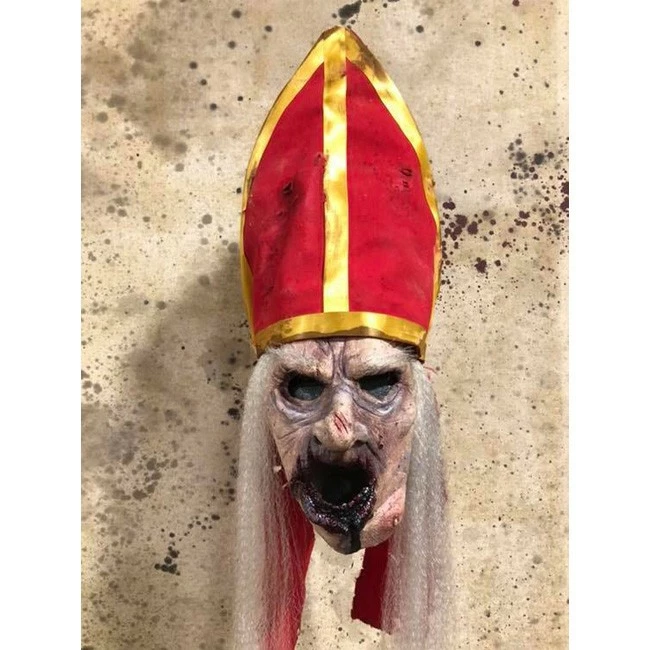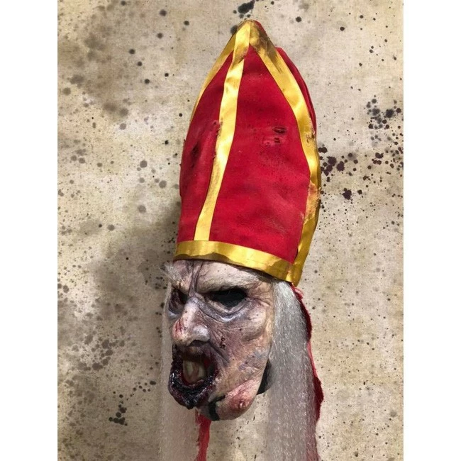 Decaying and bloodied Priest mask. Latex mask with heavy duty straps and separate hat.