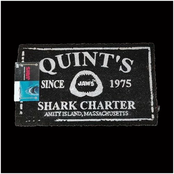 Made from coir, this black-and-white Jaws Quint’s Doormat is excellent for use as an outside doormat at the front door, back door, or garage. The doormat can be placed under an exterior covered porch or patio, protected from weather, or used indoors as an entryway doormat. Measures 29-inches wide x 17-inches long.