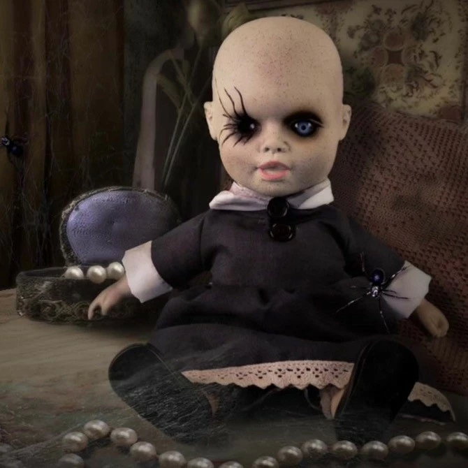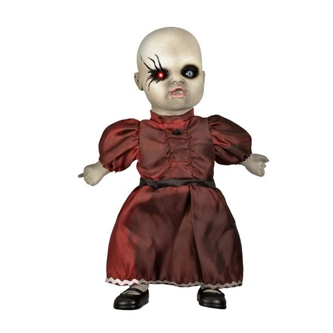 When activated by motion, these creepy dolls say a haunting phrase as their eyes glow red!