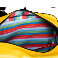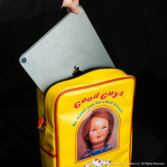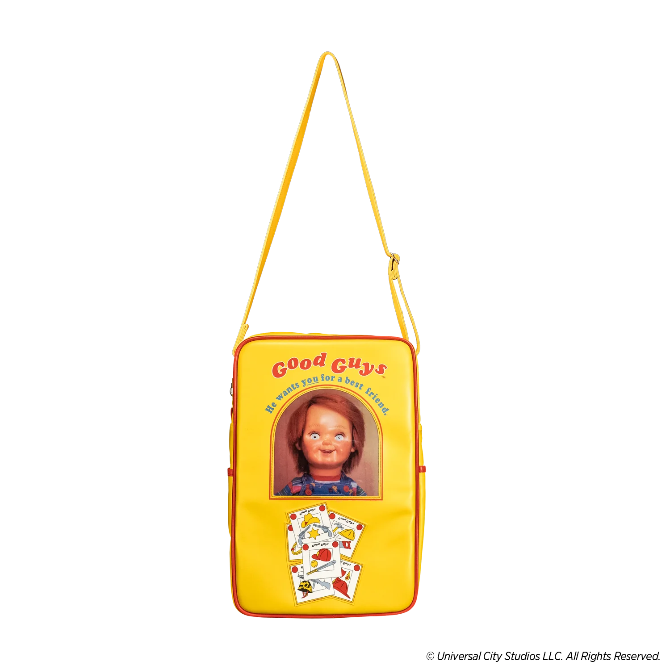 - Good Guy shoe print PVC zipper-pull on the main compartment.