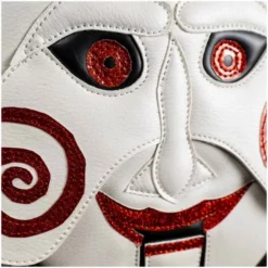Based on the Billy Puppet Jigsaw used to terrify his vicitms, this is the perfect way to show your love of Saw. This incredible purse is made using the highest quality Vegan Leather for excellent durability. In addition, the purse has a soft inner lining with a large center pocket, as well as an inner side pocket. The outside features a layered design to accentuate details with red glitter accents and an adjustable strap for shoulder or cross body comfort.